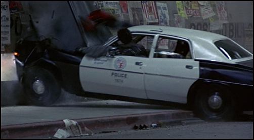 Staying there and engaging the police would jeopardize the mission. In the sequel, we'll see that the 800 series makes a threat assessment before engaging police force. Terminator had only shotgun, which most likely was damaged after the car crash, and on top of that, his hand was damaged (Novelization: it avoided using its dysfunctional right wrist) and smashed human eye was blocking his vision (Novelization: There was almost a total visual occlusion to the left eye. The eye itself seemed to be functioning properly. It was the surrounding tissue that hindered the performance). Surrounded by police, Reese and Sarah would surely have enough cars to transport them out of the scene and enough police officers to focus on the Terminator. Not to mention the powerful impact of the head-on collision doing 180 mph knocked him out. Novelization: Terminator's vision dropped out first. Then all the systems in its microprocessor went off like due to the horrific impact to its hardened chassis. The impact was so strong that Reese even thought The Terminator might be destroyed: He wondered if Terminator was dead - he couldn't see the wreck from where he was.